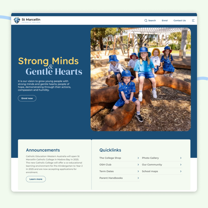 St Marcellin Catholic College getting a nomination for a school website – at a time when the school was still under construction, was a great feeling – and naturally they were very proud of their 2025 nomination, as were our team.